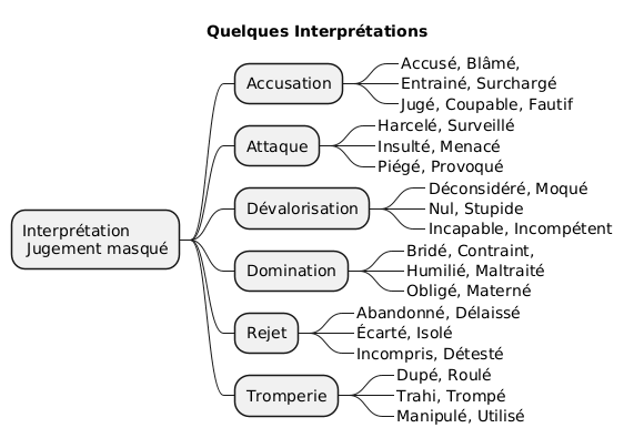 Ces mots masquent nos sentiments et sont une accusation envers l'autre (jugement masqué). Ils empêchent la communication, l'autre se sent agressé et ne peut comprendre notre besoin qui n'est pas exprimé.